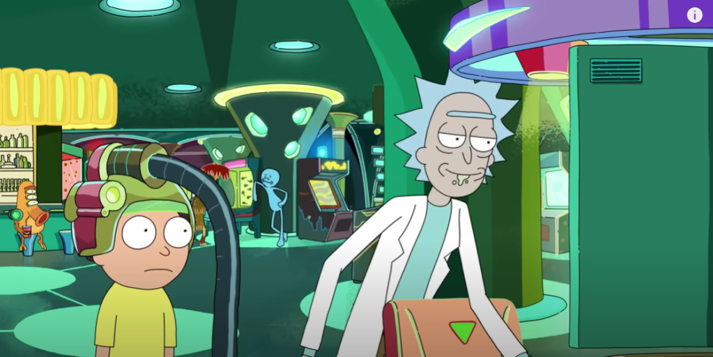 While browsing YouTube, I came across a scene from the animated TV series “Rick and Morty.” The scene depicted the two characters entering a game store filled with various aliens and humans playing games. One of the games was called “Roy,” and it was “played” by wearing a helmet. One of the characters was then fitted with the helmet.